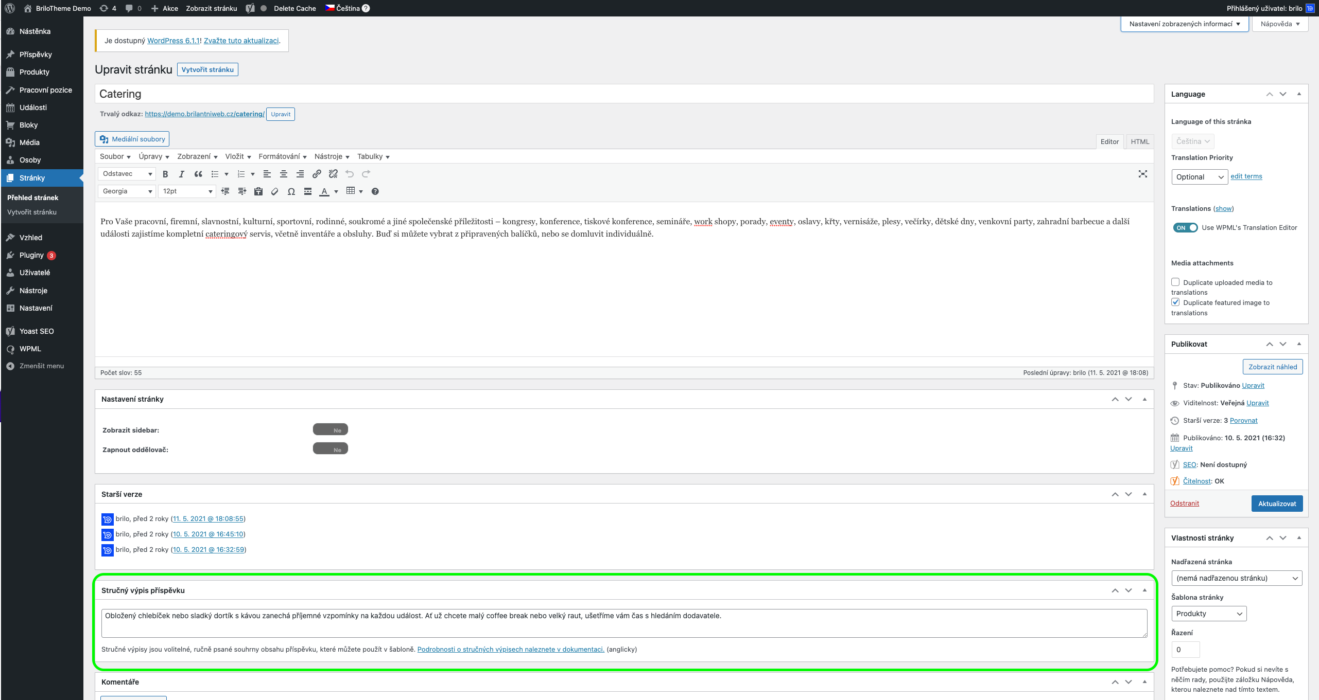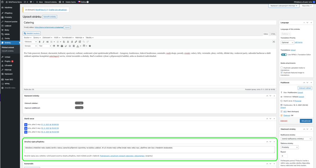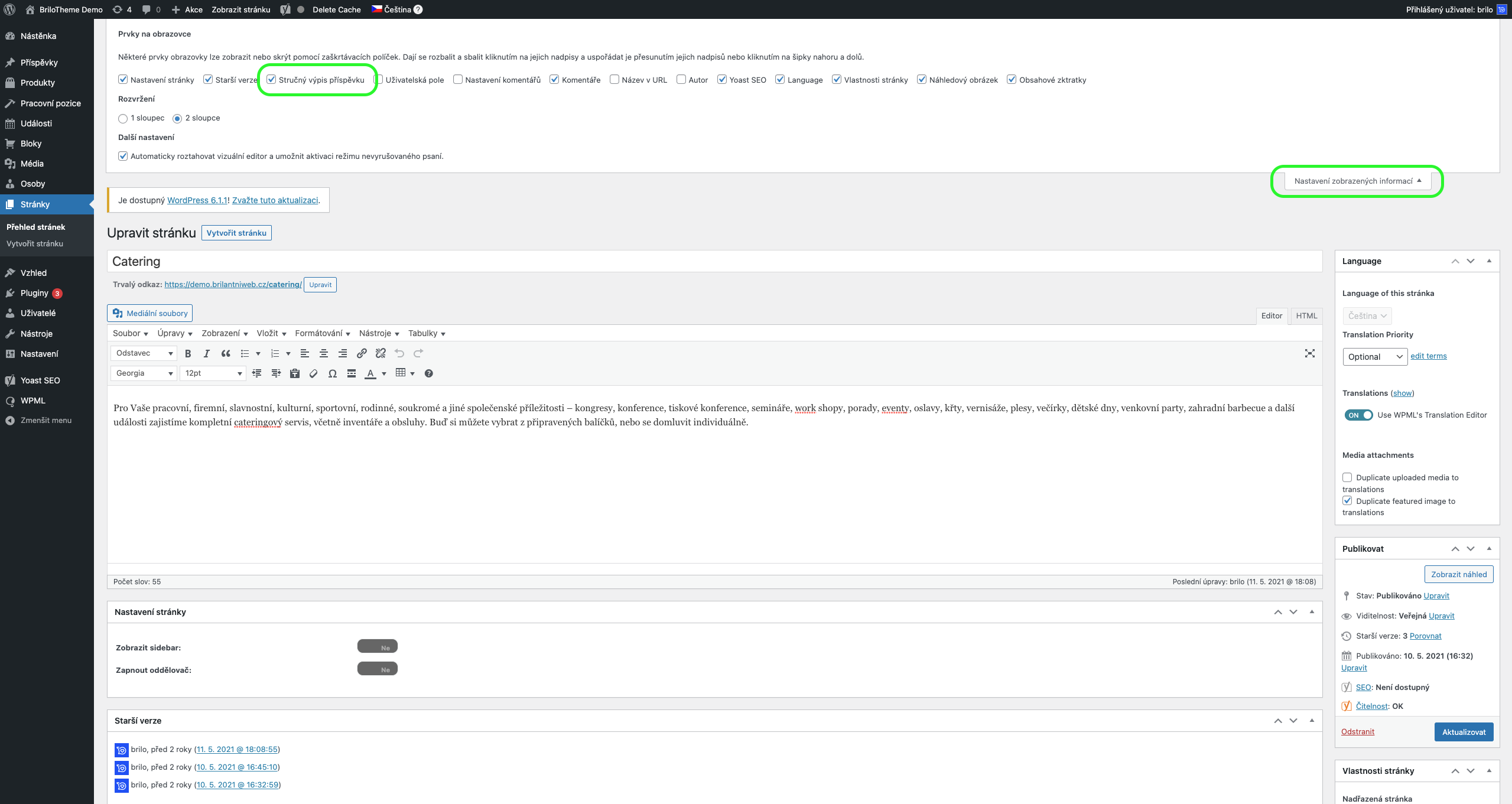 Nejprve si otevřete poslední příspěvek, nebo konkrétní stránku. Pod horní lištou je pole Nastavení zobrazených informací kde je nutné zaškrtnout Stručný výpis příspěvků. Tím se vám přidá kolonka pod obsahovou část, do které napíšete stručně o čem článek, případně stránka je a co chcete aby viděl uživatel.