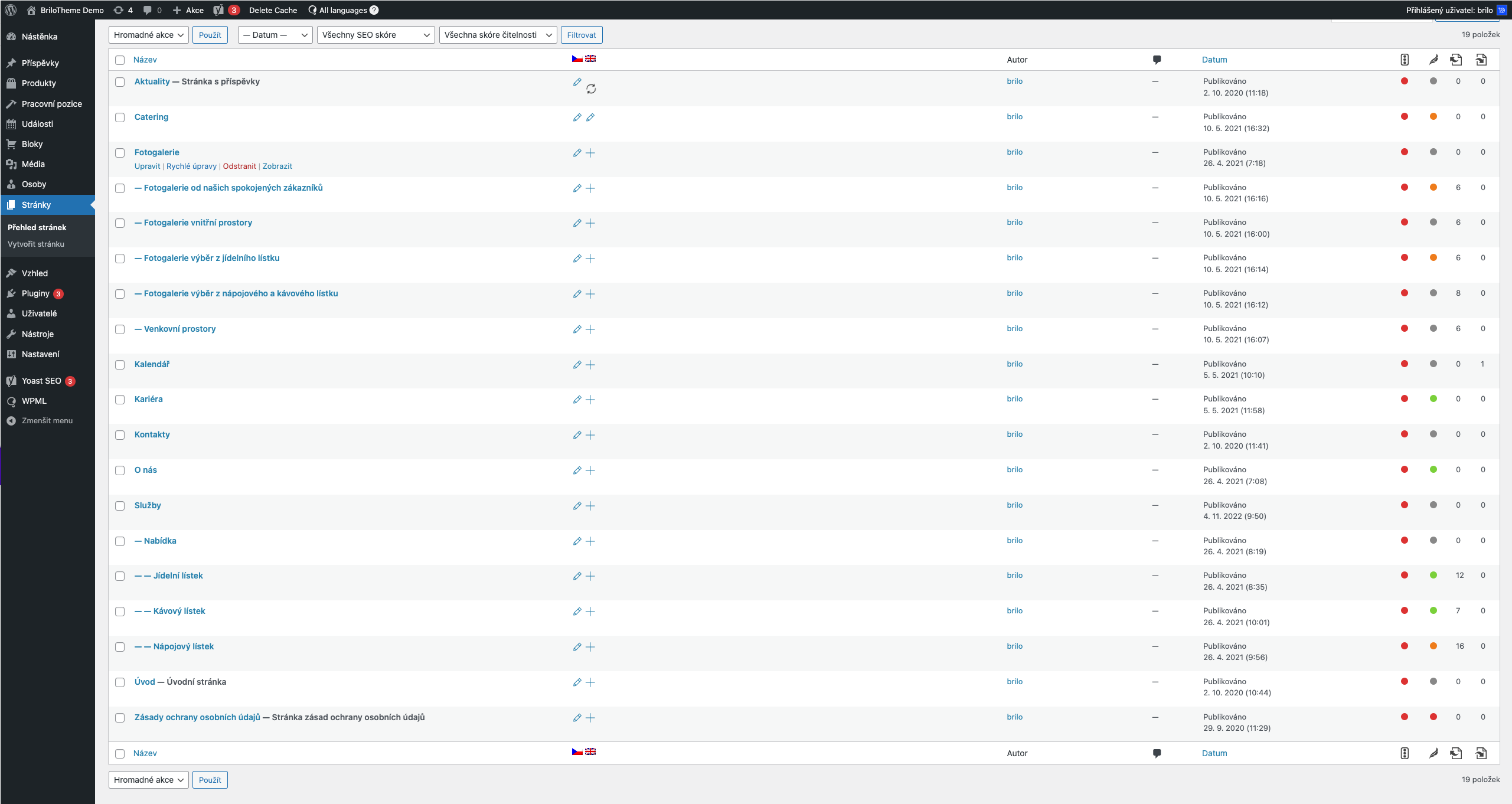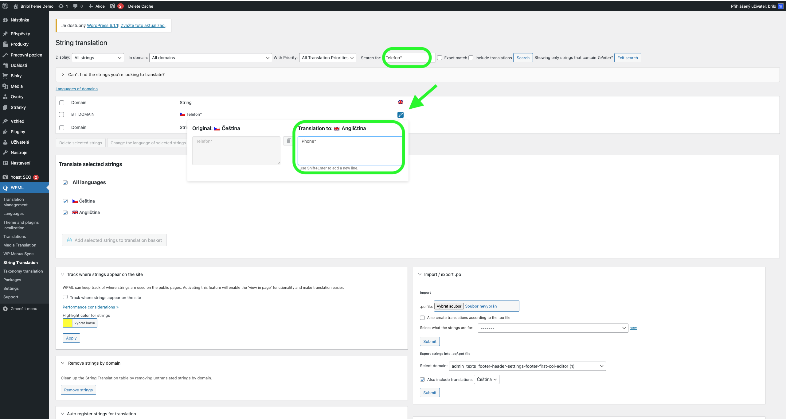 Po naplnění nebo přeložení všech stránek přichází na řadu ostatní překlady. Po rozkliknutí WPML (na konci levého, černého menu) se dostanete do nastavení. Nejvíce vás bude zajímat String Translation.