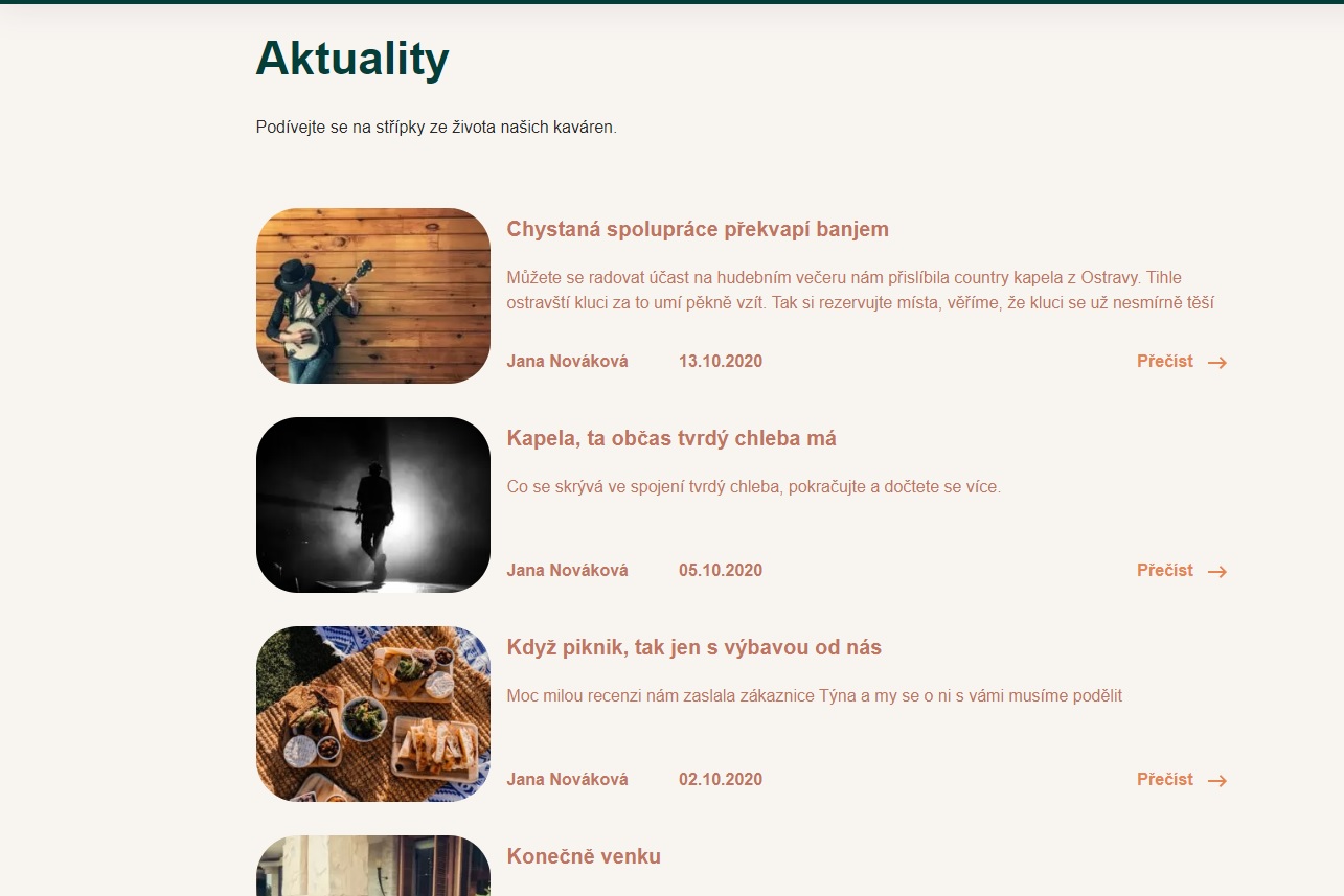 - Titulek – nejčastěji se nazývají „Aktuality“.