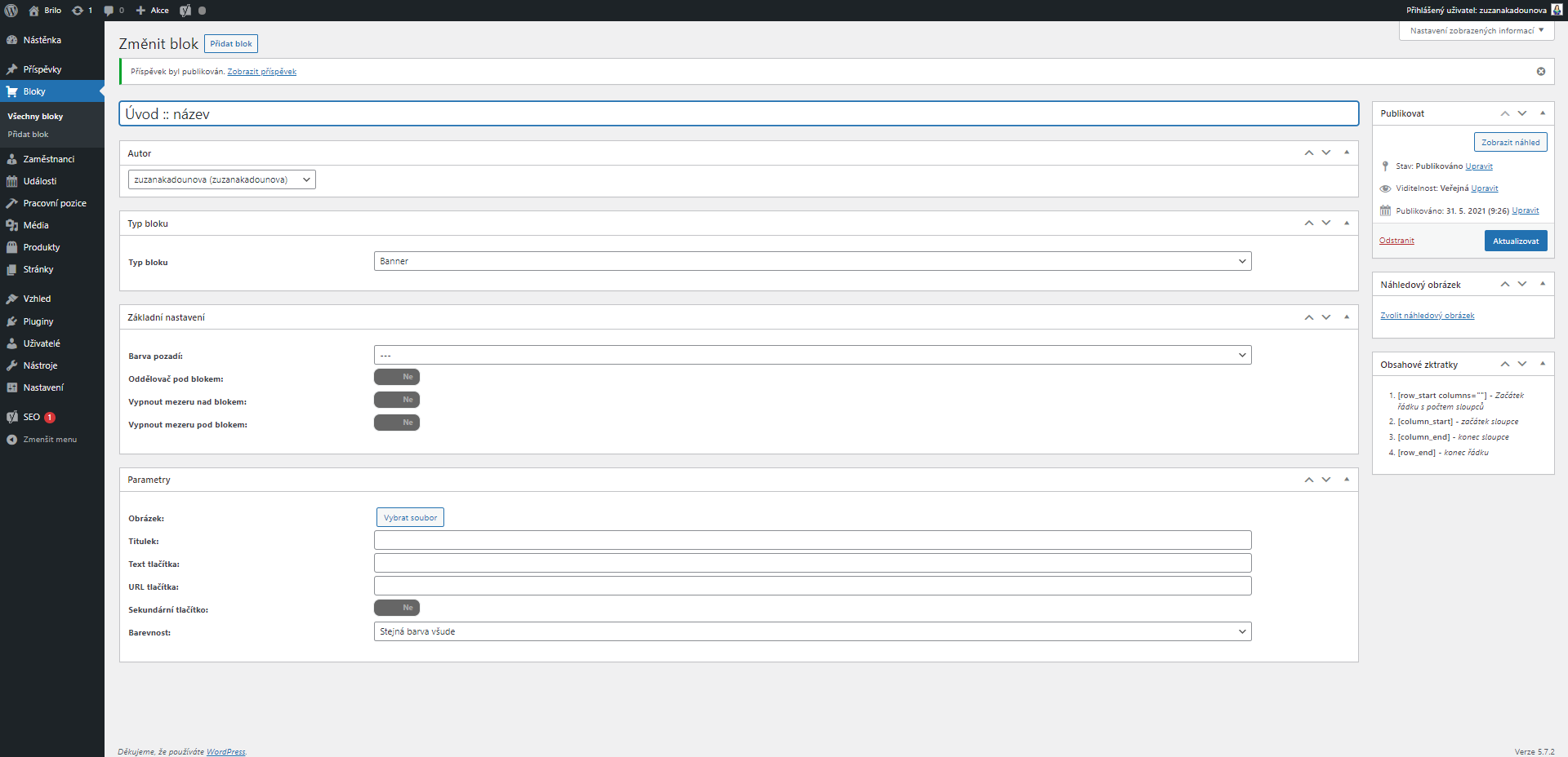 Parametry pro editaci obsahu: