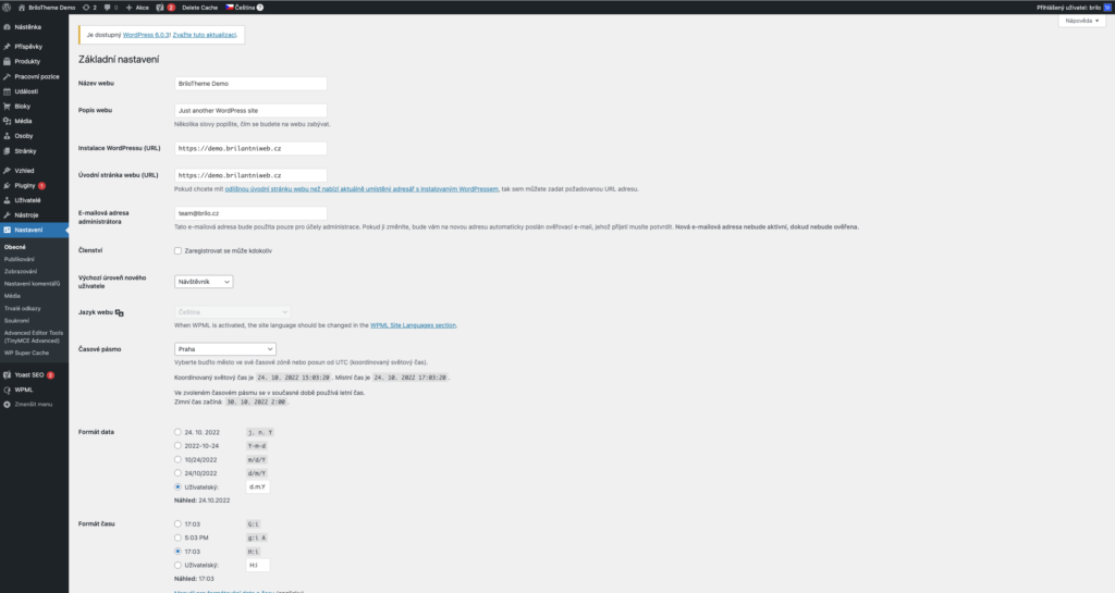 Zde si můžete vybrat základní atributy stránky. Patří sem název stránky, slogan, URL adresa a e-mailová adresa administrátora stránky. Kromě toho si zde můžete vybrat jazyk stránky, časové pásmo a nastavit formát data a času. Můžete také nastavit roli nových uživatelů stránky. Po provedení změn nezapomeňte kliknout na tlačítko „Uložit změny“ pro uložení.