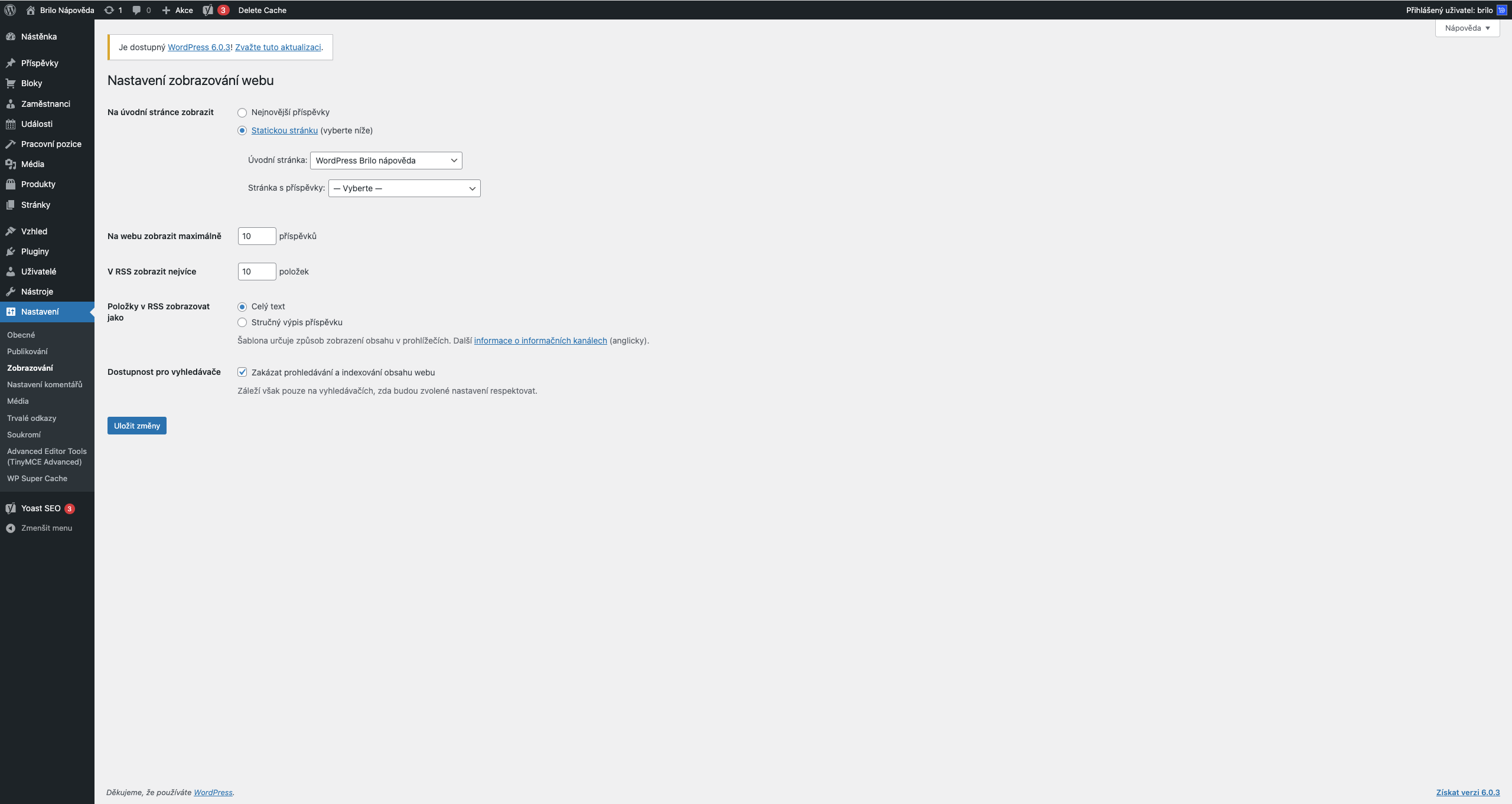 Tato funkce umožňuje konfigurovat způsob, jakým se stránka zobrazuje. Zde si můžete vybrat, zda se má zobrazovat úvodní stránka nebo nejnovější články.