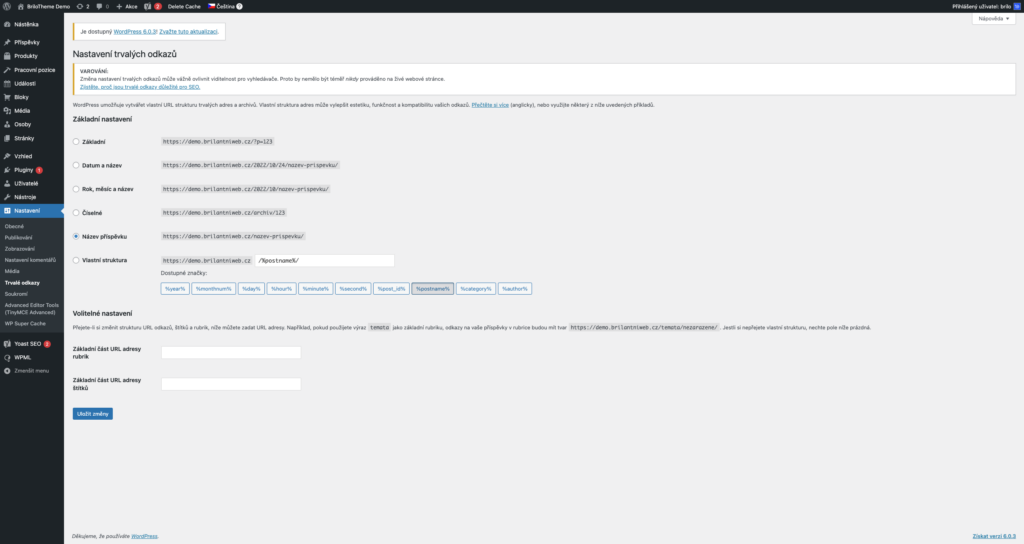 Nedoporučuji používat jednoduché trvalé odkazy z důvodu SEO. Vyberte si takový formát URL, který návštěvníkům internetu poskytne informace o vaší stránce nebo obsahu článků. Tento formát bude automaticky použit na vaší WordPress stránce pokaždé, když vytvoříte novou stránku nebo přidáte nový příspěvek na web.