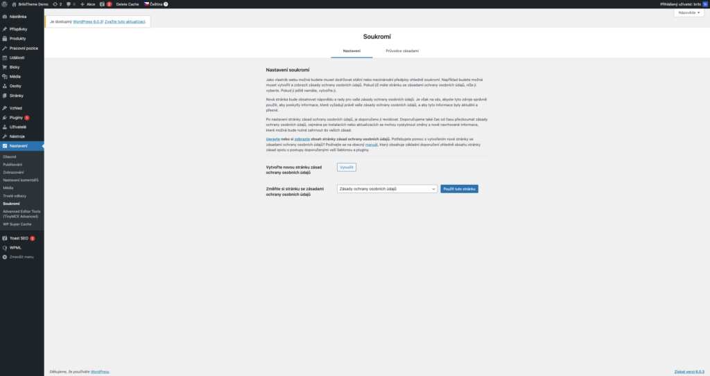 Jako vlastník internetové stránky musíte dodržovat nařízení Evropské unie o ochraně osobních údajů (GDPR). V nastaveních WordPress administrace máte k dispozici krátkého průvodce vytvořením stránky o ochraně osobních údajů. Klepnete-li na tlačítko Vytvořit novou stránku, dostanete se na stránku, kde si můžete upravit předem připravenou stránku zásady ochrany osobních údajů. Rádi vám poskytneme naši, jen budeme potřebovat písemný souhlas, že její znění berete za vlastní.