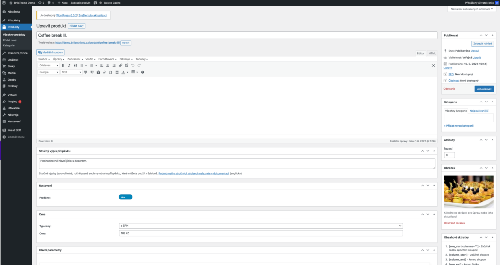 - Hlavní parametry – zde můžete zadat rozměry, obsah, barvy, materiály a další informace.